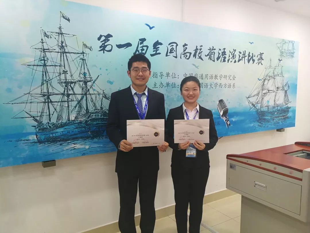 公司派出2017级葡语专业安宇和徐澜两名选手参赛。两位同学在张方方老师的指导下,历经两个月的积极准备,在赛场上出色发挥,最终脱颖而出。其中,安宇同学力压群雄,斩获低年级组桂冠;徐澜同学获同组别三等奖。