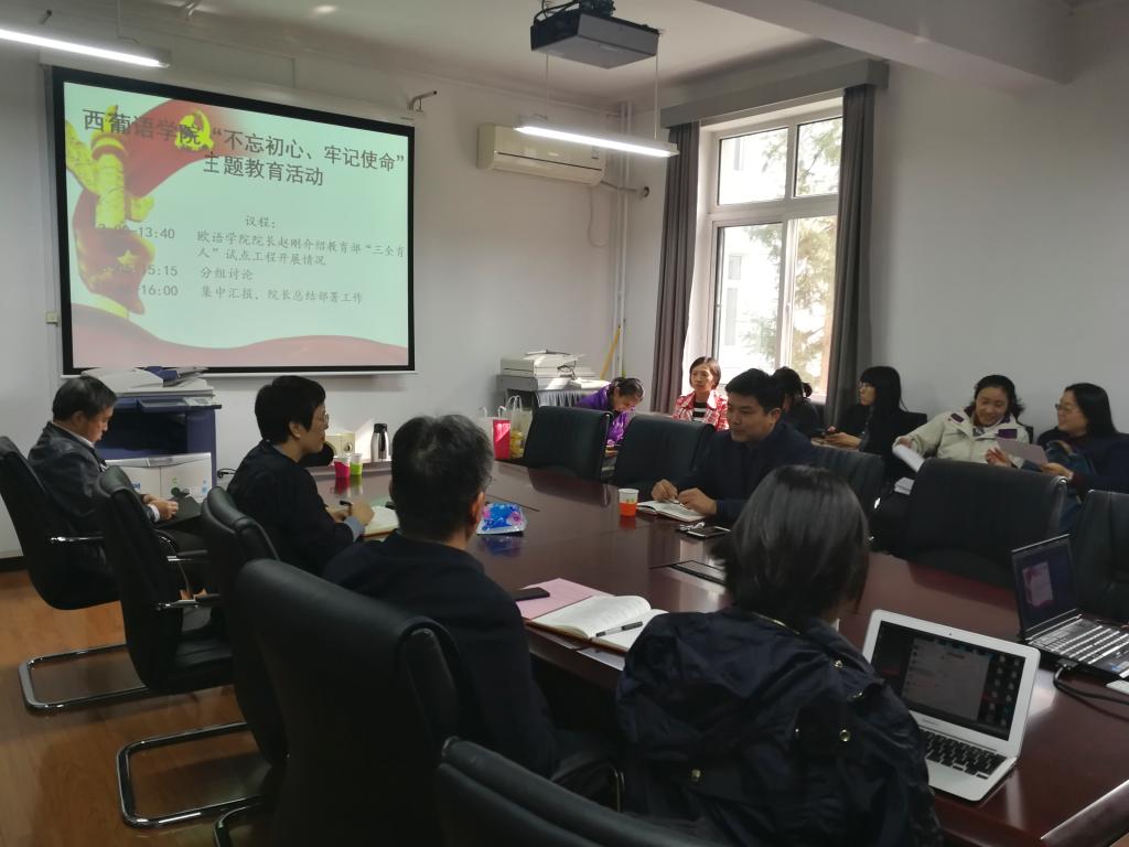 为深入学习贯彻习近平新时代中国特色社会主义思想和党的十九大精神,落实“不忘初心、牢记使命”主题教育要求,10月23日(周三)下午,公司党支部召开“立德树人”专题学习讨论活动,永利3044集团官网全体教职工参加,党总支常务副书记孙眉主持。